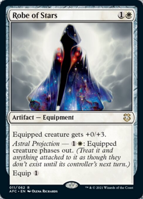 A neat piece of equipment that fits the theme, lets you dodge spells, gives a lot of toughness for cheap, which normally isn't very valuable but there are cards and decks like Doran, the Siege Tower that could leverage it. I guess phasing is back for real.