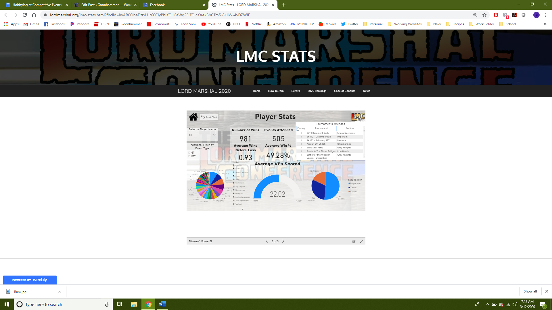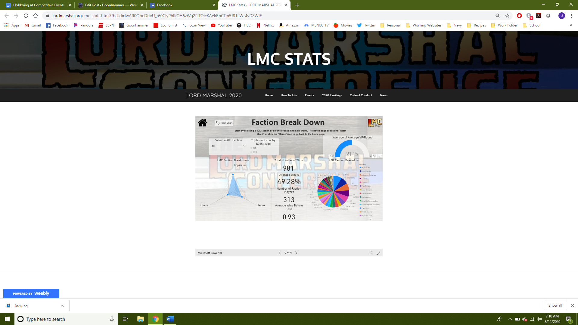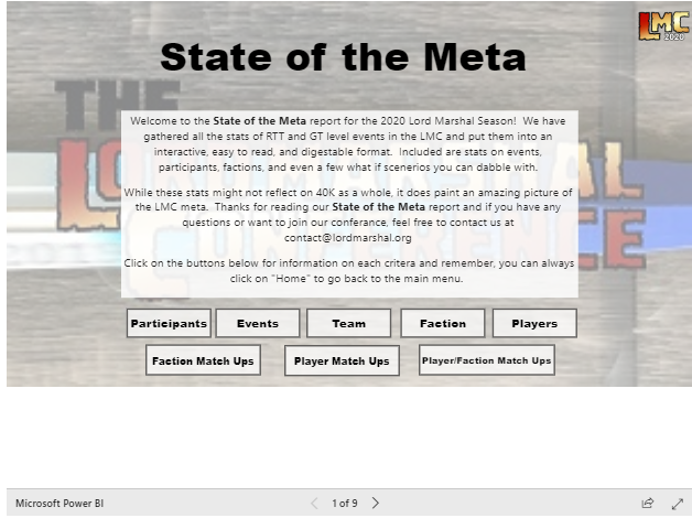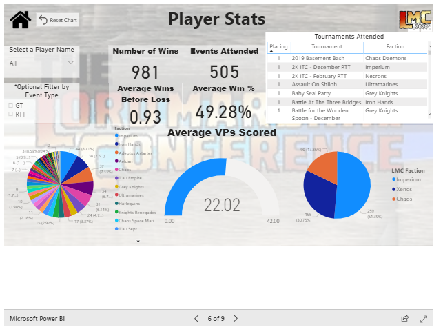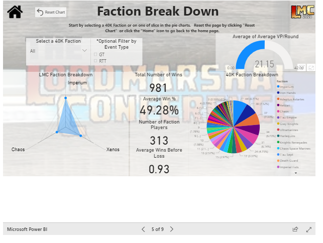 Most exciting of all is a new player accessible data visualization tool that is set to go live today! We here at Goonhammer love us some numbers and so we're excited to offer you a glimpse into what the LMC is building with their new tool. As it opens - please submit any feedback, comments, or concerns to the LMC address at stats@lordmarshal.org