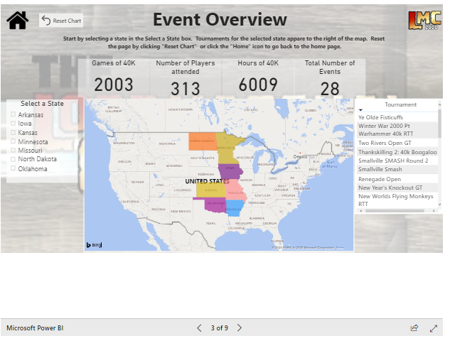 Regional Player BreakdownThe Events Overview allows you to easily peruse all recorded events within the conference and then drill down to a given state to locate the number of events and particpants. While this is cool from an informational standpoint, what I really like about this is that it also serves to drive a bit of state-based rivalry amongst the particpants in the conference – want to better represent your state and the local community? Drive more events within the conference!