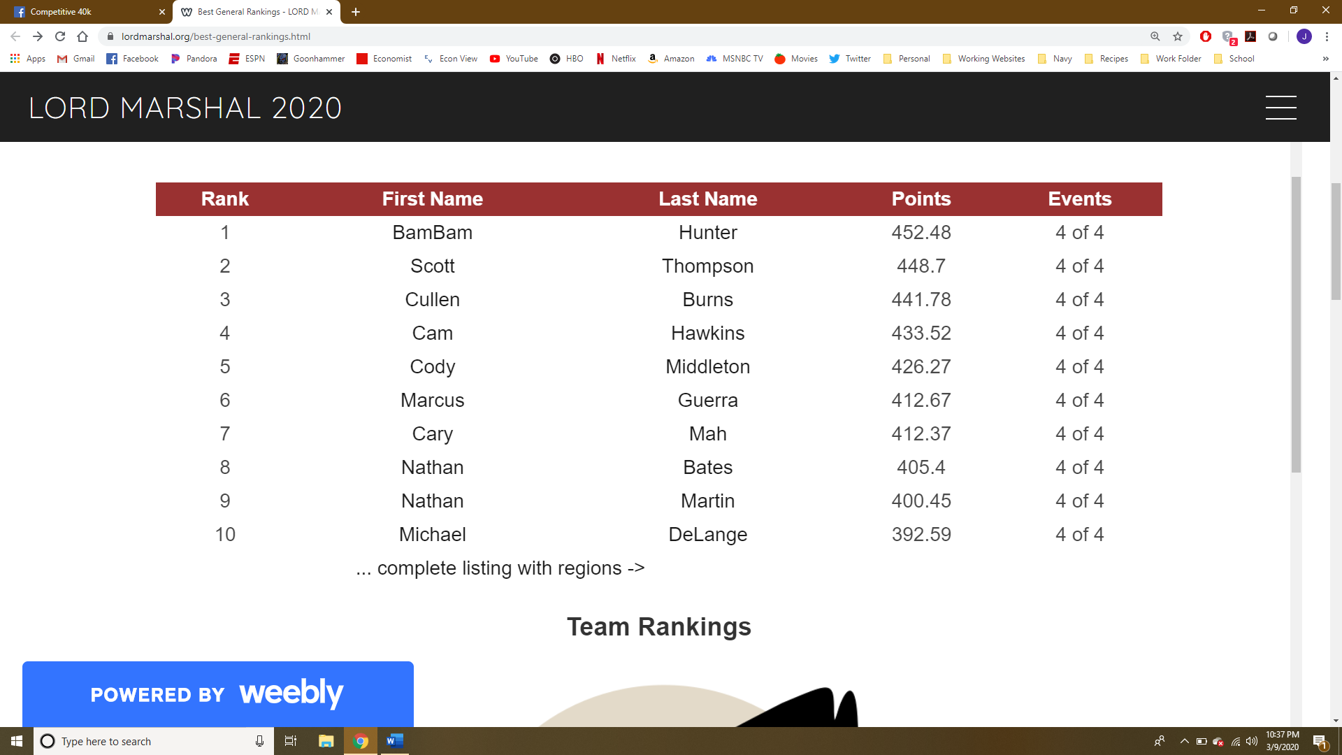 LMC Top Teams as of March 10thNEW: Data!
