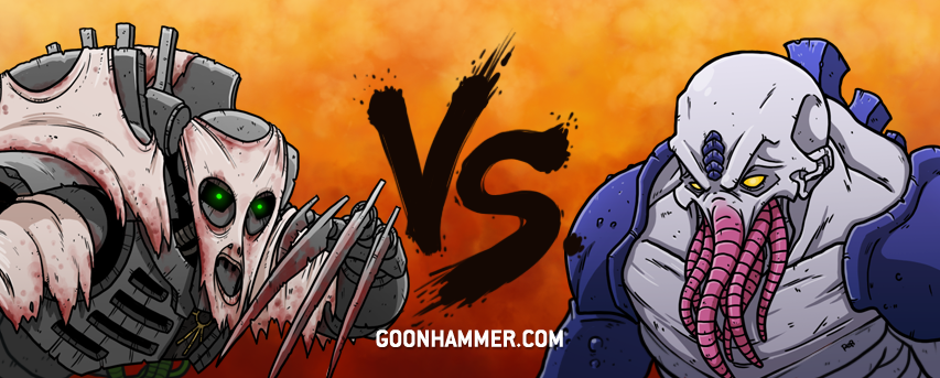 A very spicy match up in this showdown, which pits Skari's recent foray into Necrons against one of the meta powerhouses in GSC. This match up is not as straightforward for the Cults as it might seem, having played it a couple of times now, as there is some wonderful tech in the Necron index for making their lives difficult. Skari has brought two very tough slabs of Lychguard to pivot around, with a lot of supporting utility. Flayed Ones and Ophidians can pop up in awkward places and complete tasks or threaten to tie up and slice up the enemy. The Hexmark is wonderful anti-GSC tech with his ability to jump in via Rapid Ingress and start shooting back as they attempt to clear through the Necron objective holders, with PRECISION for punking unwary GSC characters, and there are plenty of vehicles and bodies with which to screen out space. Finally, the Transcendent C'Tan is remarkably adept at blipping across the board to pressure enemy backlines and requires a lot of damage to remove.On the GSC side, Will brings a list that goes heavy on Acolytes and (relatively) light on Neophytes, with the usual supporting tech pieces (there are a LOT of Ridgerunner mortars here as well, which offer additional boosts to GSC drop turns). Having invested so much in demo-charges, Will needs to get good and close to the key Necron units to do the bulk of his damage, and the screening and counter punch game will have been very important here for the Necrons. If Will can't line up the demo-drop, he's in trouble, as the most reliable profiles for Lychguard in the GSC roster (souped up massed seismic cannons and demo-charges) absolutely have to connect here (Will only has four seismic cannons in one squad), or a brick won't quite die, will start growing back, and the Crons will introduce the Cult to a world of pain. In the end that looks to be what happened here, with the Necrons ultimately managing to outmuscle the foe and secure a strong win.
