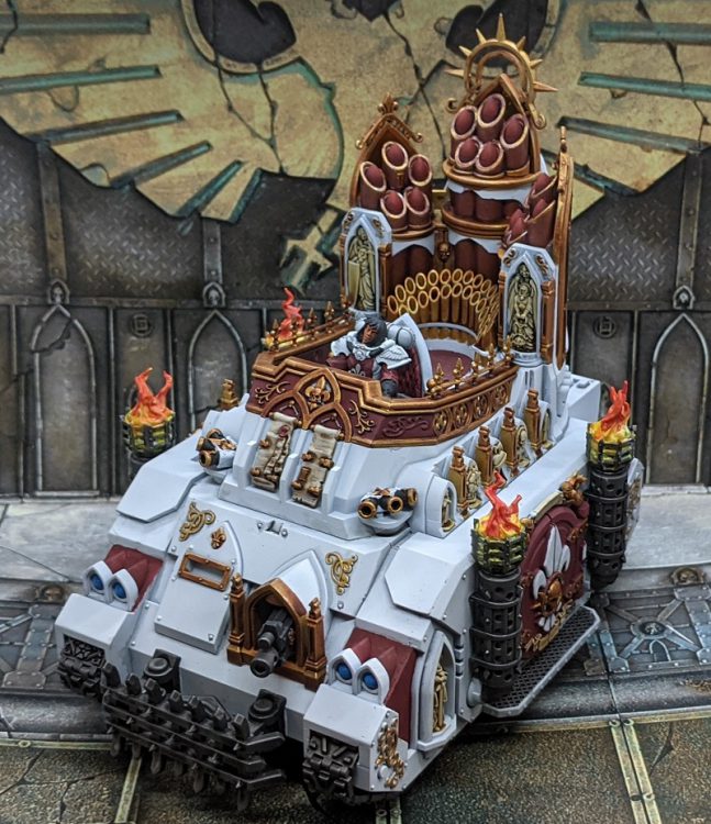 A novel spin on Sisters here, going all-in on as many hulls as possible in Hallowed Martyrs and basically eschewing Infantry outside some cheap Characters. These can go around performing Actions or whatever, and rely on Divine Intervention to make them go the extra mile while the tanks blast foes into oblivion with umpteen Miracle dice and Triumph powers. With only tanks available to shoot, the opponent is inevitably going to chip some wounds here and there, turning on the +1 to hit, and the option of self-destructing a vehicle either in the enemy lines or to scatter around the buff via Sanctified Immolation is very real and very funny. Rushing the list down does seem like one possible answer, but even then you're dealing with a nasty counter-charge from Vahl's unit, never a great place to be. Definitely a sign that the sheer efficiency of Sisters hulls (especially the Castigator) needs to go down a notch, but also a very cool way of leaning into a detachments tools, great stuff Jordan.