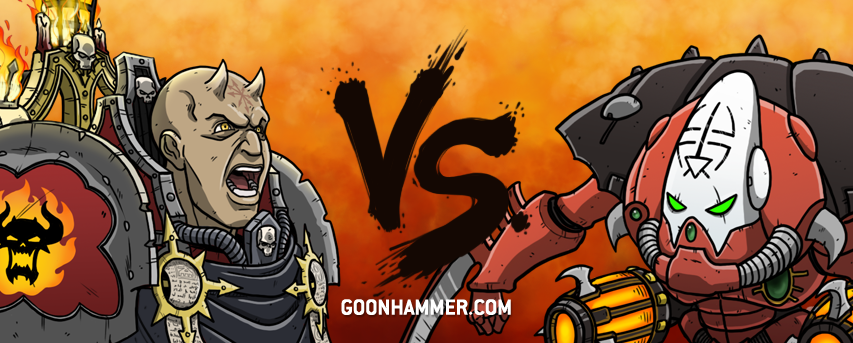 That's obviously a great plan here, so do they just win? Eh, I mean they do still have to contend with the fact that the Aeldari are extremely good at killing Marine bodies, and the big Ranger brick provides a definite "out" for the Asuryani. Sniping out the Cult Demagogue from a Accursed Commune block turns off their invuln and their once-per-game Advance/Charge, and if the Aeldari get a line on them with either the Rangers or Death Jester, that's pretty much certain to happen. The Night Spinner also helps a lot, as it lets them stop one target Advancing, staggering the arrival in melee. I figure the best play for the Aeldari here is to lean on the fact they're way better at scoring Secondaries from a standing start, and accept a low early Primary score in service of trying to clear out the Chaos Forces, while ensuring they get 40/40 on Secondaries. As ever, Chaos's incentives are thus rather the opposite - make sure they score primary early at as low cost in units as possible, denying the chance for the Aeldari to get back into the game later. Having Rhinos to stage helps a lot with that, as does the looming threat of the Obliterators, which will force caution from the Aeldari tanks. In the end, this was knife-edge close (and pretty low scoring, so I'd guess cagey plans from the Aeldari were in fact deployed), but the sheer force of the Chaos charge swung the day.