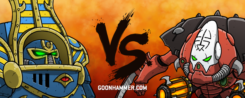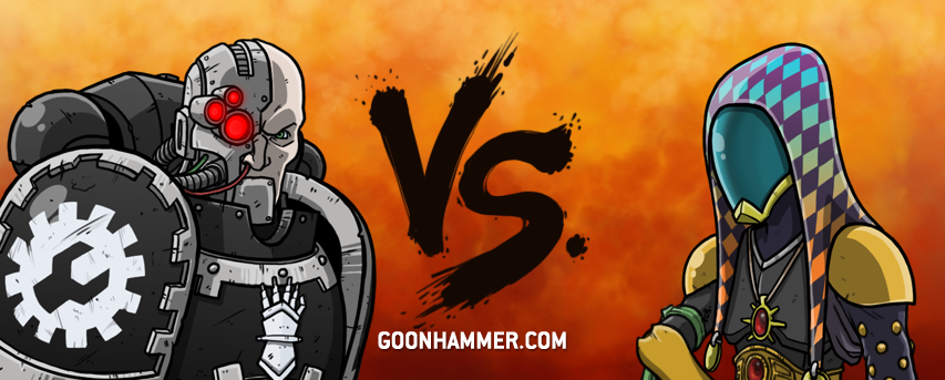 This game looks like it should be awesome to play out, as both sides have some great tools for specifically targeting the other, and both want to use precision melee to win the game. Blood Angels have gotten a new lease of life from Armour of Contempt as it's very good on Sanguinary Guard, something this list is fully ready to exploit. Light Saedath Harlequin lists would have fits trying to deal with it, but the extra AP and fight on death provided by Dark Deeds means that here this is game on. The Blood Angels have the advantage of having units that can actually soak up a charge, but the tradeoff for that is that their stuff is far more expensive, giving the Harlequins far more scope to make a profitable trade up at a crucial moment and pull ahead in the game. However, the Harlequins can't afford to be too bold either, as lurking amidst the Marine ranks is the threat of a well-timed Null Zone resulting in the swift annihilation of all clowns standing in a 6" radius. Even in the realm of objective play, these lists are hilariously well matched up - both have brought their faction's anti-ObSec abilities, so have power plays to make around flipping a key position. The Blood Angels also have quite a few cheap units to throw away on securing positions, and can demand early attention using the Incursors if needed.