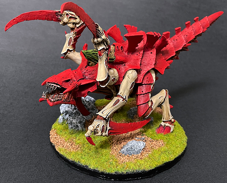 Malik's list is, to be fair, not short on damage, complementing some of the Crusher Stampede's normal favourites with a Harridan. The Hive Mind's favourite dragon is a terrifying multi-phase threat and extremely difficult for many lists to kill. Mani's list is almost certain not to manage it - the sheer number of bodies he has on the board means that it probably does have to drop to hover mode to operate, but it'd take it catching full re-rolling swings multiple times and spiking down on saves to ever die, and it throws out more than enough pain to keep big units away from it. With Hive Guard operating as well, Malik's list can definitely play keep-away well enough to be confident of pulling off To The Last as well, and has the alternative option of Grind from either picking off small Wrack units or focusing down one a turn while staying at bay.