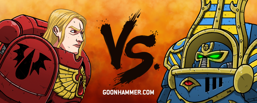That means that Banners looks pretty attractive for both sides, as it should provide a fairly reliable tick of points that the opponent would have to make significant sacrifices to stop, but past that a "passive" Secondary game favours the Sons, as Psychic Interrogation is great here. There's no great third Secondary option for the Sons, and Blood Angels do get some good kill options (including Abhor), but to score those they're going to have to reach out and start murdering the Tzeentch forces, opening them up to counter attacks with either psychic powers or Flamers. They do at least have the advantage that they're much happier fighting for the board centre game-long, which could help on the primary, but on Death and Zeal the Thousand Sons can get to 40 just by sitting on two objectives and murdering one errant jump pack squad a turn, so there's no big advantage to be built up there. With the Secondaries as picked (Banners/Abhor/Prisoners for the Angels, Banners/Engage/Interrogation for the Sons), the Blood Angels are required to take the fight to the Rubricae to win the game, which potentially lets Mani control the flow of battle enough to win.