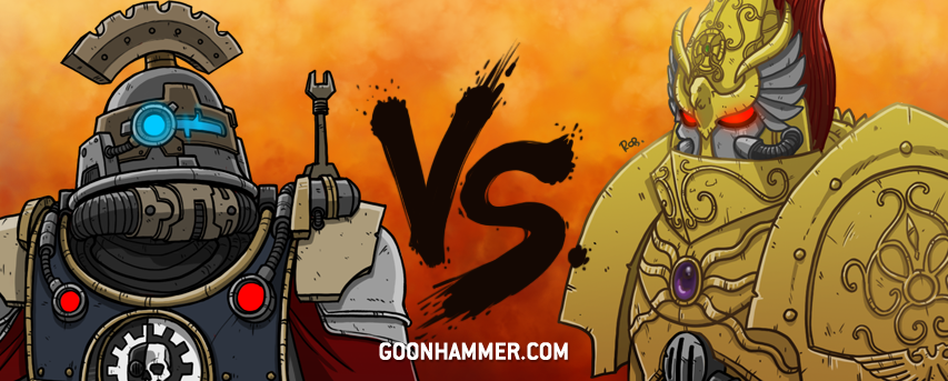 That said, Custodes have some assets of their own. Having Wardens and a Bike Captain makes it much more plausible for them to sustain at least moderate primary scoring safely, and the combination of the Caladius and salvo launchers forces the Skopii to stay hidden, only chipping away with their belaros cannons. Indirect fire is useful to the AdMech here, as it lets them chip away at the Custodes more expendable stuff if it emerges from cover, but that's going to be slow. The other huge upside the Custodes have is that their threats don't really need any help to counter the AdMech's tools, whereas the AdMech very much want to dump a bunch of strats onto a unit to get it amped up enough to clear a squad. It means that a melee on multiple fronts favours the Custodes, but the AdMech are slightly favoured if the game stays cautious.