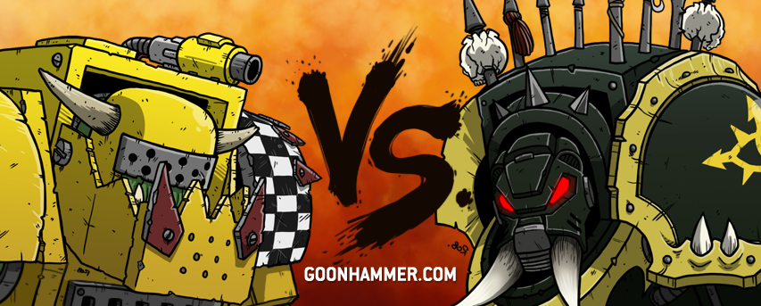 For this one we're lucky to have Warboss Ben in the house to talk about the matchup himself, so we just went right to the source and had him tell us about the game:"Warboss" Ben Jurek: It was the finals of Socal Open and the pressure was on. I was praying to Gork and Mork knowing I had a high chance of going into the Tyranids. Then the pairings went up and I ended up pairing into the Black Legion, piloted by Alan. He's a stylish, kind fellow and we instantly hit it off with a similar positive energy, becoming best friends. We started off by explaining all the weird stuff that was unique to our factions and the obvious "gotchas" that exist in our codexes.