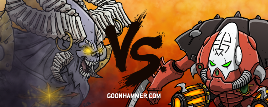 Yeah so the Scouring is about the worst possible mission to try and play that game on, and makes this vastly more even, if anything slightly favouring the Daemons. Suddenly, they can play a pretty passive game that forces the Craftworlds to try and engage - Banners/Despoilers/Ritual requires some active intervention to stop, and while the Craftworlds could swap Scout out for Banners themselves, the Daemons having big wrecking balls to clear out objectives makes that somewhat risky. The Daemons can lead with the big threats, and when the Craftworlds commit into them sweep forward with Flamers for a counterattack, dangerous stuff.