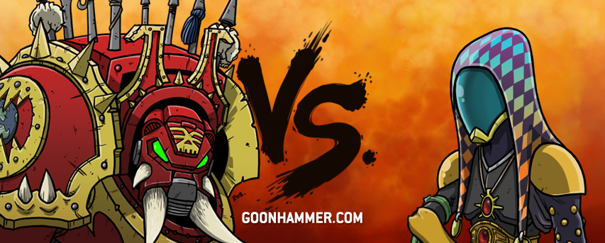 The newest hotness of the World Eaters face off against a faction whose time in the limelight is somewhat behind them, but who still have a few tricks up their sleeve. Right now Harlequins kind of have to go one of two ways - either build for big damage with Twilight and try to body opponents before they can exploit the weaker defences, or skew as transport-shooty as possible and lean on the layered defences that provides. The good news for them here is that they don't need to worry about the World Eaters shooting them off the board. The bad news is that, especially on this mission, it's going to be very tough for them to avoid fights with the World Eaters that they don't want to have, and nigh-on impossible to stop the servents of Khorne scoring 45VP on their Secondaries, which...does not leave a lot of options.That locked-in scoring on Secondaries poses a gigantic problem, because while the Harlequins can do an alright job of shooting the World Eaters, from a pure balance of violence point-of-view they desperately need to be able take a mulligan on vying for objectives on turn one, soften up the enemy as much as possible, then try to go absolutely gangbusters turn two, where they might be able to push through, and overwhelm some of the enemy stratagems. That just flatly doesn't work with the scoring challenges in place - Harlequin Secondary play is good, but it's nowhere near as easy for them to score 45 here, and if they let the World Eaters take a single 12VP turn they may genuinely just not be able to catch them unless they straight up clear the table on turn two. That forces them to try and play a more direct dual from the start, and there are just so many things that can go wrong there, especially if the World Eaters go first. Anything that they touch basically just dies, and the same isn't true in the other direction, so if the World Eaters just stage two Rhinos full of Beserkers mid-board turn one, it's tough to see the Harlequins managing to shape the game to their needs. They also have to worry about Blood Surge moves if they try and bring their pistols to bear, and a single one of those going badly wrong could be fatal.