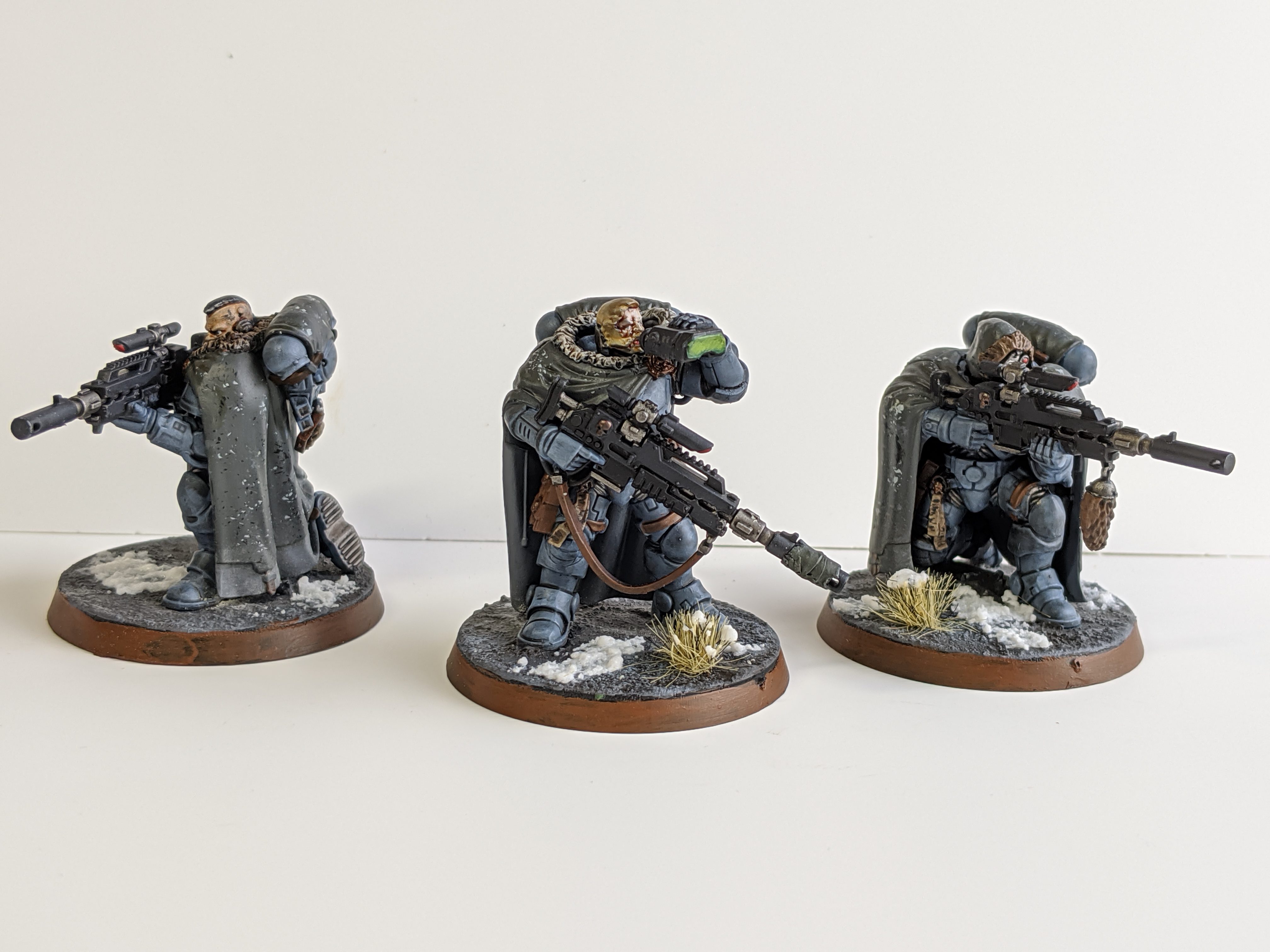 . Eliminator Sergeant [25pts]: Bolt pistol, Camo cloak, Frag & Krak grenades, Las Fusil