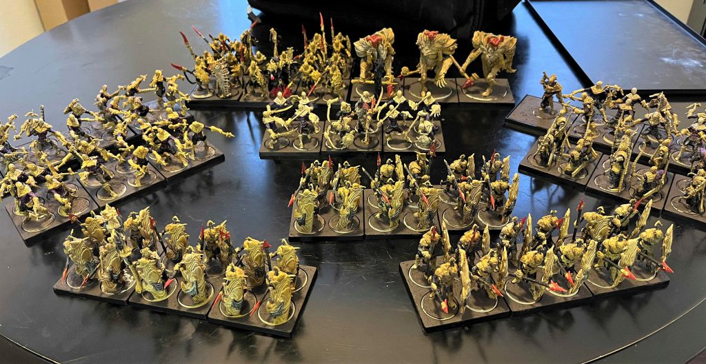 If I’d had to make a prediction ahead of the event for lists most likely to podium, this would have been at the top of the list. Changes made to ranged units in Conquest 2.0 have produced a gunline-friendly environment (which is not necessarily the same thing as a gunline-dominant environment), and spires are packing the ideal list for the environment – a gunline that beats other gunlines.Key to the list are the multiple blocks of Vanguard Clone Infiltrators with High Clone Executors. In addition to being competent shooters themselves, the High Clones add the Loose Formation rule to their infiltrator units, which halves the number of incoming shots from ranged and magical attacks. Coupled with their ability to still shoot after withdrawing from combat thanks to the fluid formation rule, and they’re about as close to a complete package as you can get, with few obvious weaknesses. Coupled with Biomancer support to crank their damage even further and you have the game’s apex ranged unit. The mobility and high damage output for relatively low frontage even means they can typically bring shooting to bear even if the terrain is unfavourable, with Karl noted that he generally found it easy to avoid obscuring and obstructing terrain (although in his opinion this is true for ranged units generally in Conquest at the moment).