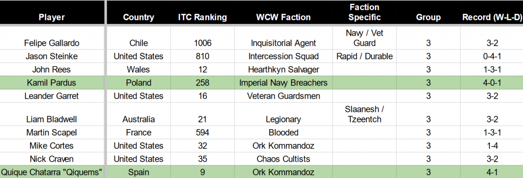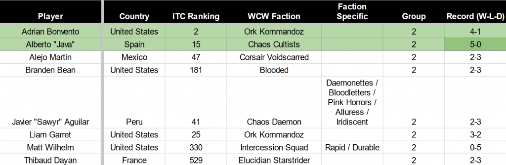 TC- “The group also looks toxic for its elite players between Breachers, Blooded, Kommandoz, and Cultists… This would be a group that we’d expect some Orks to make it through, with the last spot being a touch of a wild card.”