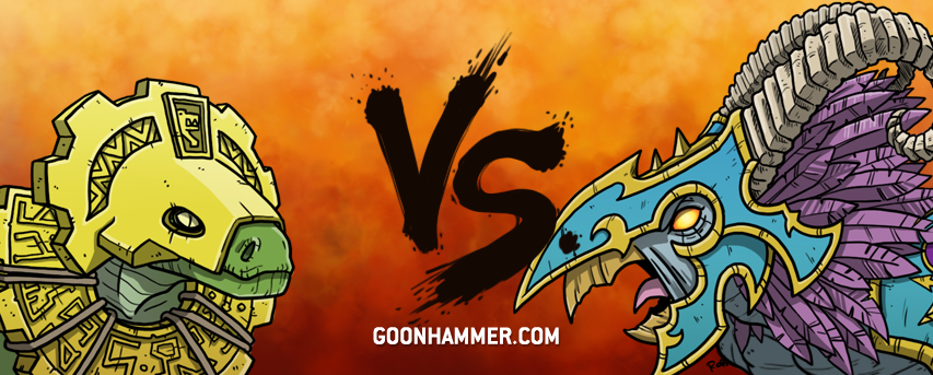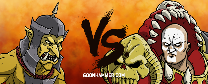Genuinely this is a hard one to call. Both of these lists are some real dark horses, especially this DIY Big Waaagh. While the Khorne list has a lot of redundancy (guaranteeing lots of blood points before the day is done and chaff to block their path) its mostly foot sloggers, which the Kruleboyz have some dirty tricks to deal with.The Kruleboyz also have ways to teleport, and unlike most Kruleboyz lists, have some actual hammers thanks to Kragnos giving them a means to propel forward. The match is ridiculously close giving the Kruleboyz win by a mere 2 points.