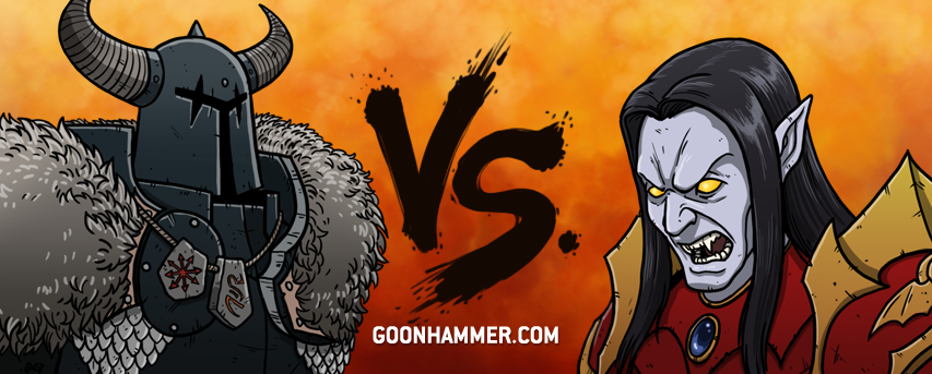 Both these lists are a bit off model for what we usually see. A slaves to Darkness army without Varanguard or Chosen? Sons of Behemat without Brodd? Nice to see some variety at least.Chaos Knights are good, they're just often struggling in the same slot as Varanguard. But for their point value they can really slam down a lot of damage, it's just unfortunate that they are more easily blunted in extended combat than Varanguard, which I imagine was the big struggle here.