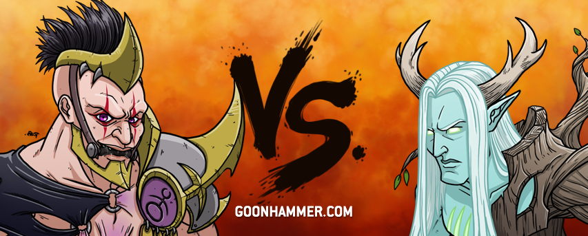 On paper I'd give this to the Sylvaneth. Hedonites have not held up so hot this edition and while you do see the occasional fluke, Sylvaneth have a more consistent win record. Sylvaneth are also better at striking and then fleeing, where as Slaanesh is frequently left high and dry if they don't kill their target on the first go around.That said, Slaanesh isn't completely lacking in tricks. With Glutos they can be buffed up quite a bit, and he can be well shielded from the Sylvaneth's attacks. With all the Twinsouls and Sigvald, they can dice right into the trees and pick them up. Without many models, the Sylvaneth will likely be whittled down over time.