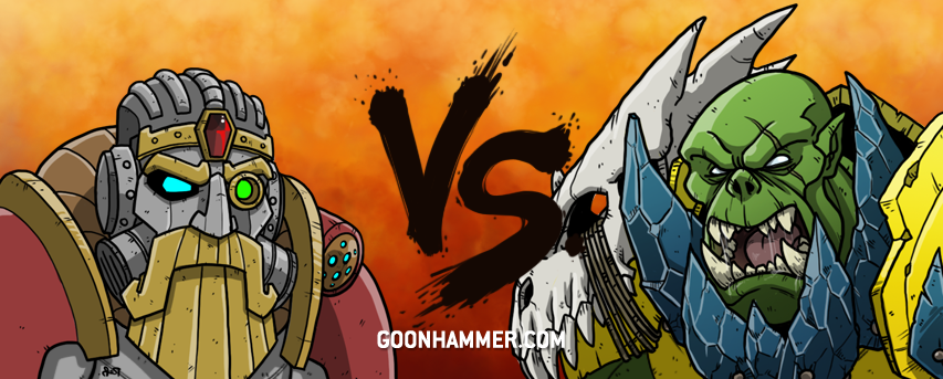 Despite the KO's reputation as "the shooting army," this KO list is very melee centric, allowing Skywardens and Vongrim's to do its work. Naturally, the Ironjawz are also melee centric. Both rely on tricks to get up on the front line fast, with the KO using the Frigate to transport their Skywardens forward and using Strike First, while Kragnos grants 3D6 charges for the Orruks. As this usually goes, a lot of it is going to rely on who can get the charge off first, but the KO also have way more bodies to hold objectives, which likely contributes their significant victory in this fight.Result