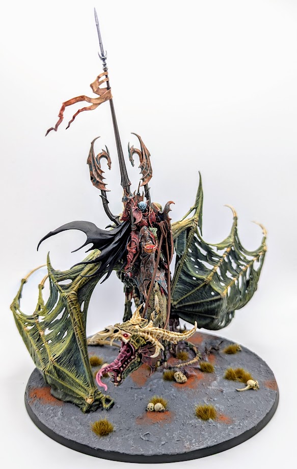 This list splits the difference by accompanying Prince Vhordrai with Askugan Trueblades and then a separate retinue for Deathrattle. Prince Vhordrai is a strong hammer on his own, but his ability to hand out permanent buffs to the (not too shabby) Askugan Trueblades augment him well and gets the ball rolling. The Vyrkos and Vargheists are also vampires and while they can benefit from Vhordrai's buffs, they're more a piece of movement tech to snag objectives or screen out enemies.