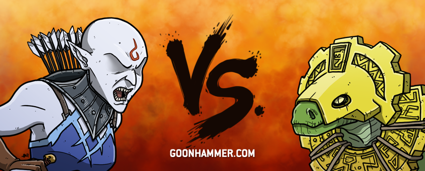 It's a cavalry battle! While the Allopexes (and Morrsarr Guard) are really wanting to charge, the Aggradons can take it or leave it. Sure they get a charge bonus but they tend to better in protracted fights, and can still do some decent damage even if charged. That said they would prefer to charge in this instance, because Allopexes get a pretty gnarly ranged attack and then can swoop in for the kill.So as always with these kinds of fights, the battle is gonna come down to who gets that crucial charge and based on the score, we can guess who.