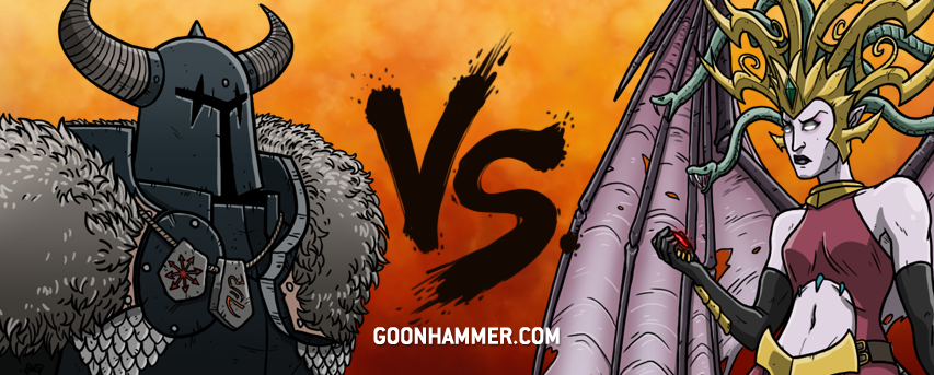 This uses the old Daughters of Khaine rules, to be clear. To be frank, Slaves to Darkness just have a much tankier strategy that would allow them to hold their ground against Witch Aelf charges, and since Daughters of Khaine take a while to really ramp up thanks to their Blood Rites, their Knights and Varanguard can push up early to try and pick up units, so Krethusa has to waste time reviving them earlier in the game when they'll be less effective.Result