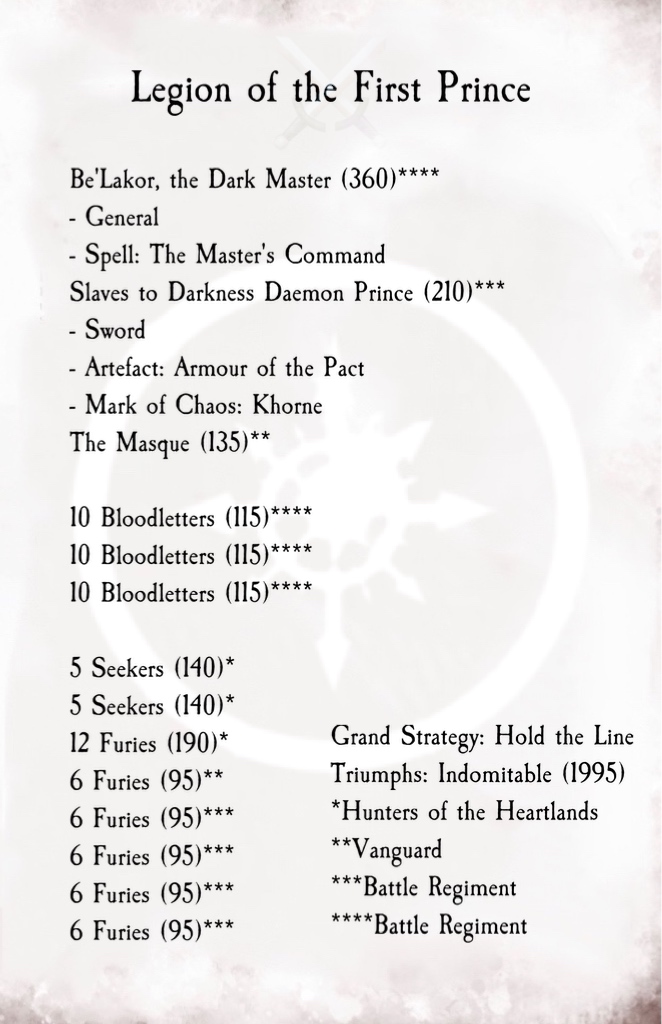- 8th - Phil Marshall - Slaves to Darkness: Phil has been pumping out the good results with his Everchosen list, with Archaon, 6 Varanguard and some cultists supported by a Sphiranx, CSL and Chaos Lord.