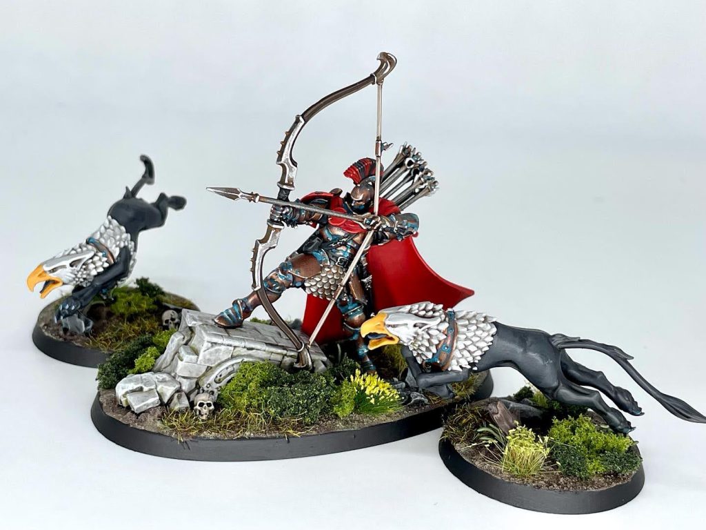 So how do they establish board control? Well it's all about the bases - the Hexwraiths can body block a large footprint thanks to their bases, likewise for the Black Coaches. Ronya can pin units in unfavourable positions and help them survive through the Black Coaches and Olynder adding D3 models back to a unit each turn (with Olynder putting 1 model back to each unit nearby instead). To help their stickiness even more, the Cruciator making their ward save stronger, and the Guardian can even chip in with his warscroll spell.