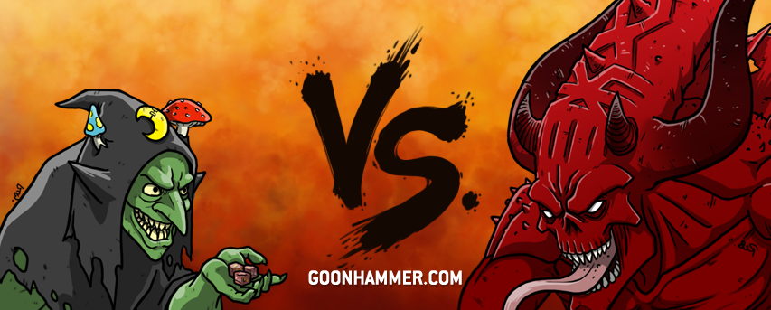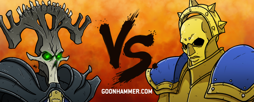 This is a pretty competitive matchup. The Gitz have numbers, certainly, but also the hammers in the form of Troggs and Boingrot Bounderz to back it up. While Khorne can certainly punch back as well, rocking three Bloodthirsters, their units are delicate and the Bounders have a bit more mobility to work with to start doing some work on them early before the Troggs come in. The increased mobility also makes the mission, Geomantic Pulse, much more in their favor.Ultimately the Gitz pull ahead in a close battle.