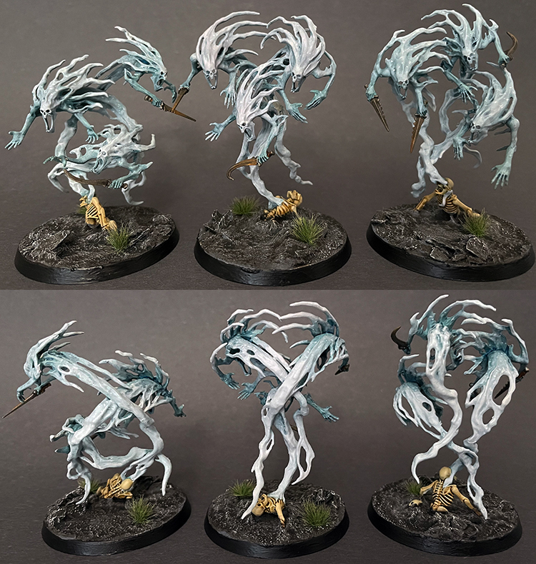 The 3 heroes act as support pieces that reduce damage taken by nearby units similar to Scaly Skin, replenish models into the BGR units each turn thanks to Captured Soul Energy, or simply provide +1 to wound, meaning with AOA a single Bladegheist revenants is putting out 3 attacks that hit on 2s, wound on 2s, and have a cheerful pip of rend.