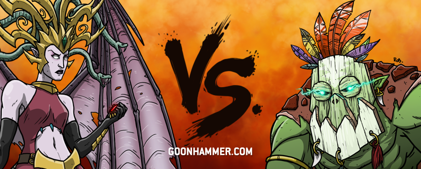 DOK will have a bit of a hurdle here, since they aren't so good at weathering blows, particularly fight on death. Lack of ranged attacks works against them here, forcing them to get into melee. That said they do have a lot of bodies and with Zealous Orator it's possible to keep the numbers up and with Heart of Fury blunt the damage incoming.Result