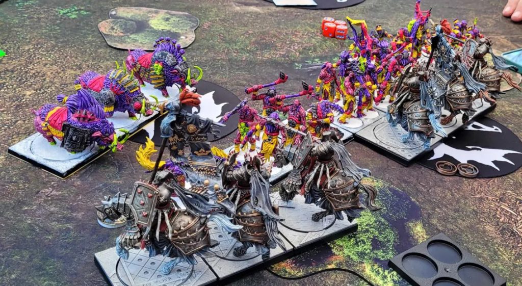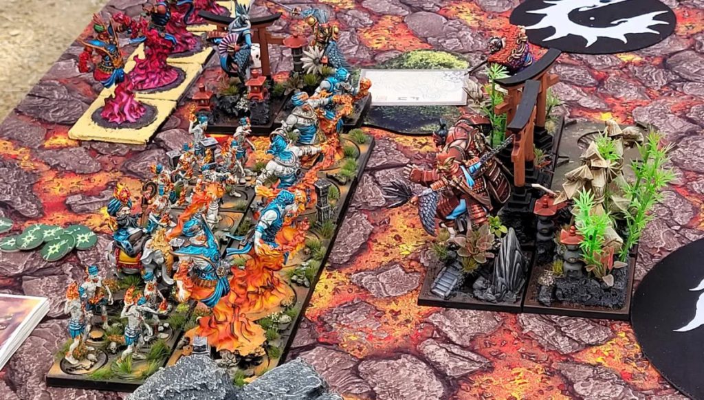 The U.S. team ran some pretty tight testing, and I was glad to see everyone on the team going 2-2 or better. My preparation mainly consisted of hammering out games with Bryan (the only Dweghom player at the event). I feel like this practice helped a ton, there weren’t any matchups I felt unprepared for.My list was built to be a stat check, and it did its job in that respect. The quality of units makes playing against an experience where you just can’t have things go wrong and survive. This bore out in my games; something always goes wrong at some point in conquest, whether it’s failing too many lethal demise saves against the Origami, having bad reinforcement rolls or a spike of bad defence rolls. Against the quality of Yoroni regiments and monsters, you just can’t afford that and they run you over if (when) things go wrong at all.