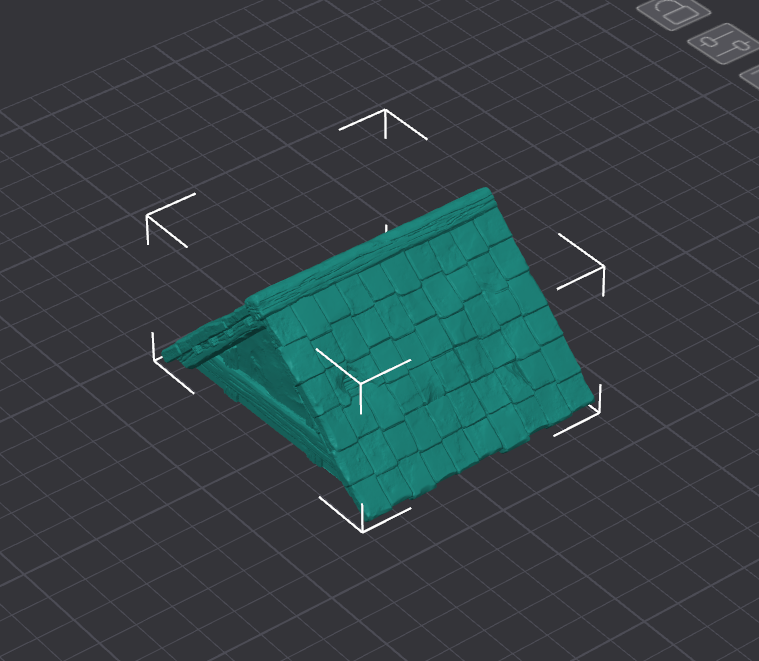 When it comes to the roof pieces, by default they load eaves down. While you could print them in this orientation with lots of support material, I found that rotating them 90 degrees so that the flat face touches the build plate, and then enabling supports gave better results. If you don’t mind a copy of slightly sloppy tiles, you can also add support blockers to the tiled surfaces to reduce material usage and overall print time.