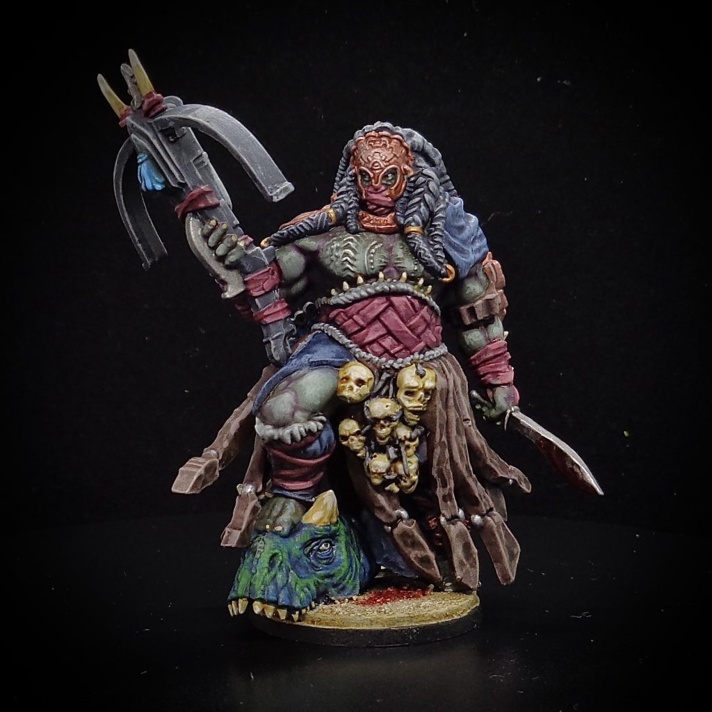 Not yet released, but that shouldn’t worry you because there isn’t a great use case for him. He’s faster and one wound more resilient, but you lose Retinue and Warband options, and the only reason you’d ever take him is to run him alongside Raptor Riders which don’t really benefit from his abilities. Sure, you can technically shoot with Raptor Riders and use the Predator’s Ways of the Hunt to boost that, but you’re wasting a lot of points if that’s your gameplan. Thrill of the Kill can turn Raptor Riders into missiles with an 11” move then re-rolling charges, but he doesn’t need to be in that unit to grant that. If you’re looking for a hero to run with them, a Matriarch Queen gives better offensive and defensive upgrades and lets you score with Raptor Riders, making her a universally better choice, though there’s probably a (weak) argument to be made for taking the Predator on foot and giving thim the Brood of Omgorah instead. We’re sure this model will be amazing, but the rules right now just don’t support him. Sorry.