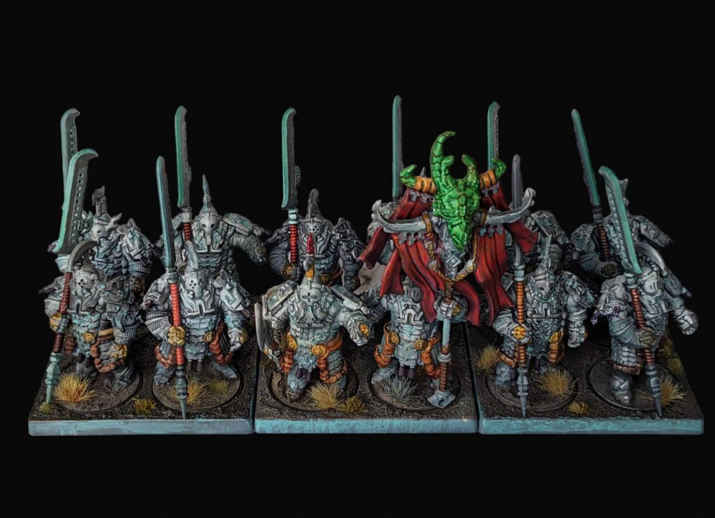 Credit: Habaguero from the Conquest discordCurrently the most expensive infantry option that the Dweghom has, and let’s see what they are. Solid in all the stats that mattered, including cleave (3) to take care of pesky...anything. And Fiend Hunter to re-roll because why not! Though they have an additional two new benefits now in the current iteration of the rule: 1) Free standard bearer, which gives them unstoppable and 2) Show ‘em How It’s Done!, an ability that makes another regiment awakened if they kill something -- thereby making chain awakening possible. They are premium for their point cost, but certainly they have a very solid place in the army.