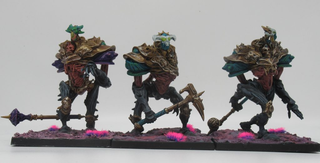 "Awfully straightforward" is the best explanation that I can give to this grotesque creation. Flurry and unstoppable means that this brute is designed to crash into an enemy front and output plenty of damage. Though lacking in cleave, flurry and 5 attacks ensures that they can reliably land 3-4 hits easily per model. Their high Resolve stats also make them less prone to running away once they are hit back.