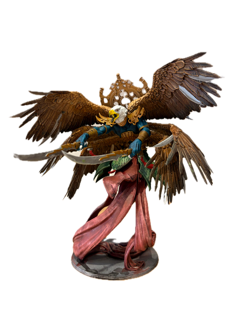 As someone who doesn’t consider themselves a particularly skilled painter, I love painting wings. The models detail and texture does a lot of the heavy lifting, allowing for simple techniques to produce strong results. My approach was straightforward:- Wet blend from a light brown to a very dark brown (almost black).