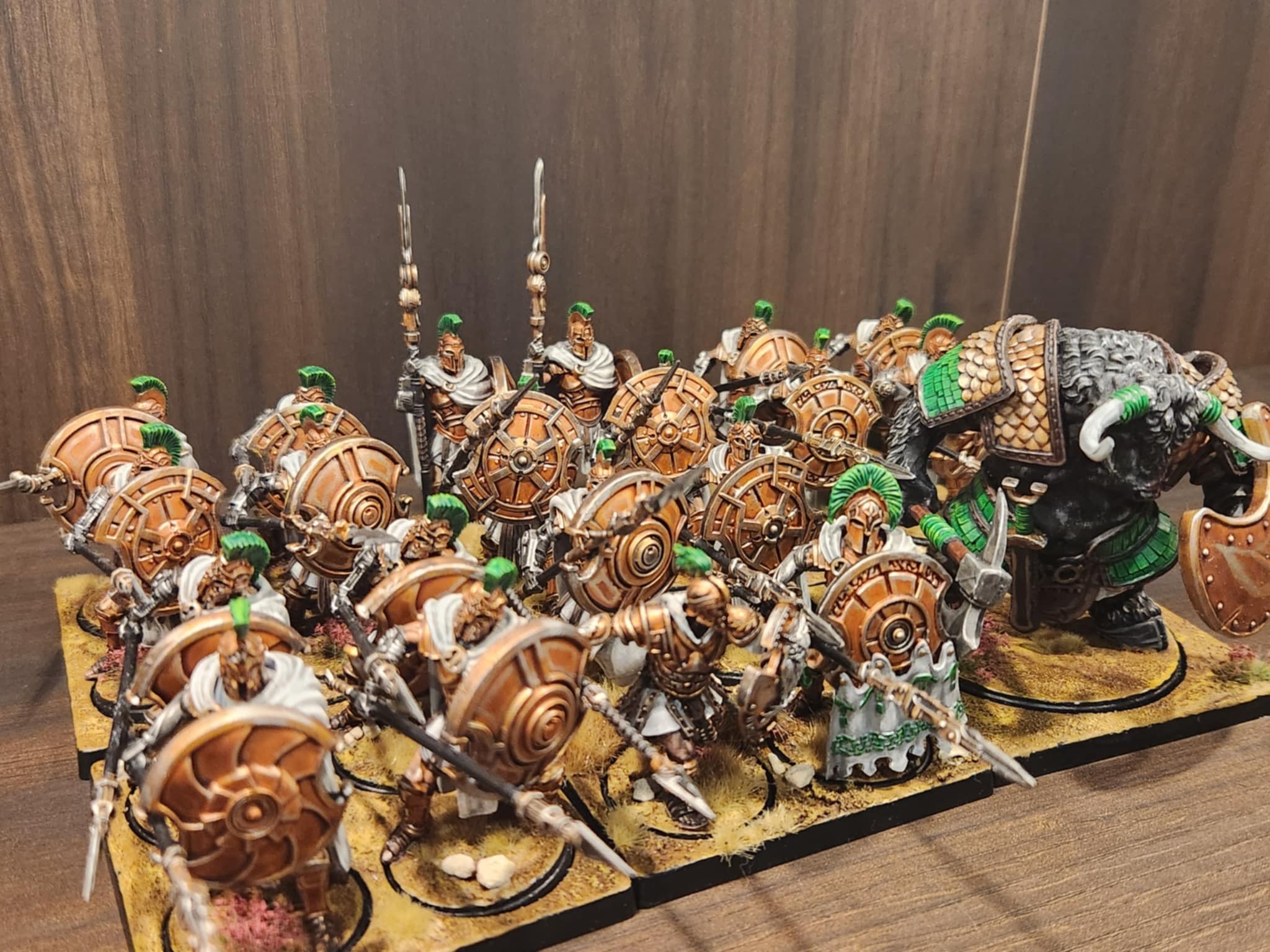 In contrast to the Selinoi, the Thorakites are a unit that you can pour two hundred points of upgrades into and not feel like you’re getting a bad deal. The easiest thing to do is Combined Arms Drills+Minotaur Thyrean, meaning that for 210 points you can get a reasonable unit to book it up the table and score early. It also can be very tempting to add a Polemarch into the unit; the resolve boost is huge and moving the unit size to five helps avoid being shattered and that’s a serious chunk of additional damage. At that point you’ve spent 300 points on a monster of an early game unit that can not only score early but can seriously bully many medium units who get too close.Medium Regiments