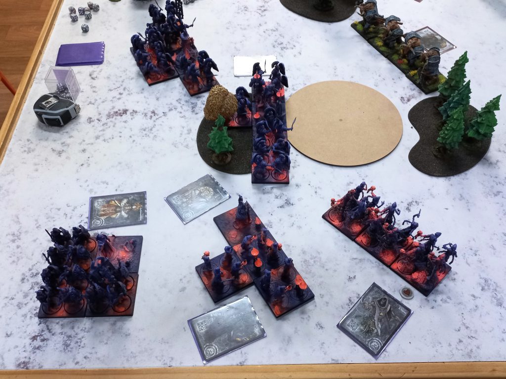 While I was able to get early picks against his Ghol units to keep his activation count down and prevent aggressive picks against my own units, Ewan positioned to establish a small but significant scenario lead. Bulwark is a scenario like Echelon that tends to encourage players to pick a ‘home zone’, but unlike Echelon, the zones are further apart and harder to pivot between. This meant Ewan could wait for me to deploy to a zone, commit reactively to the opposite zone, and then play to deny me a single round of scoring using the sorcerer kings’ Intrusive Thoughts ritual. Although I recognised this threat and was able to stop it on some of the turns he attempted to deny me scoring (since Intrusive Thoughts can only target one unit, I could counter it by having two or three scoring units in a zone), even an early lead can translate to a win in a scenario as static and linear as Bulwark, and Ewan made sure to establish and maintain that lead, spending the lives of his troops carefully and consistently to ensure the score advantage he needed never slipped out of his grasp.