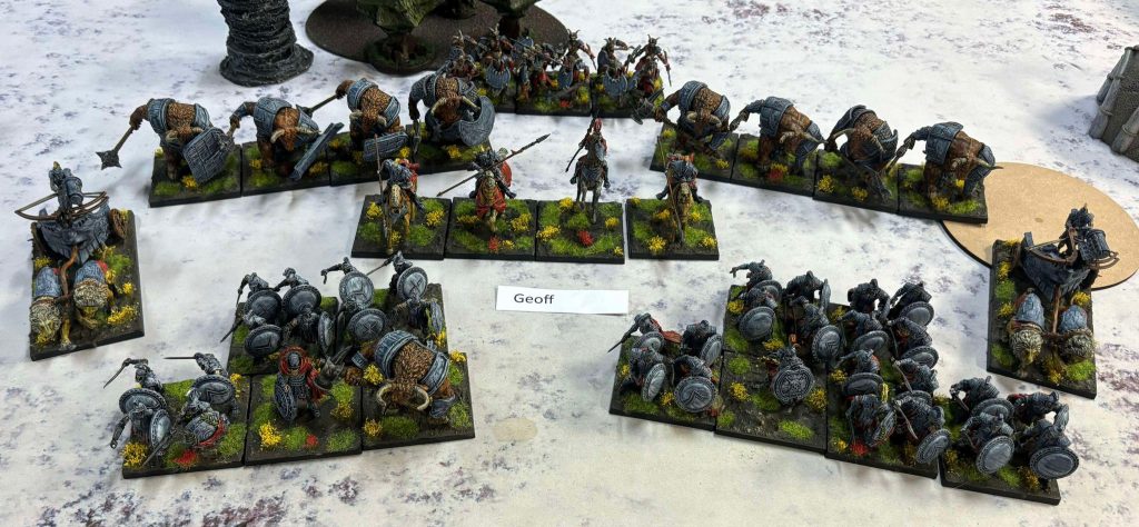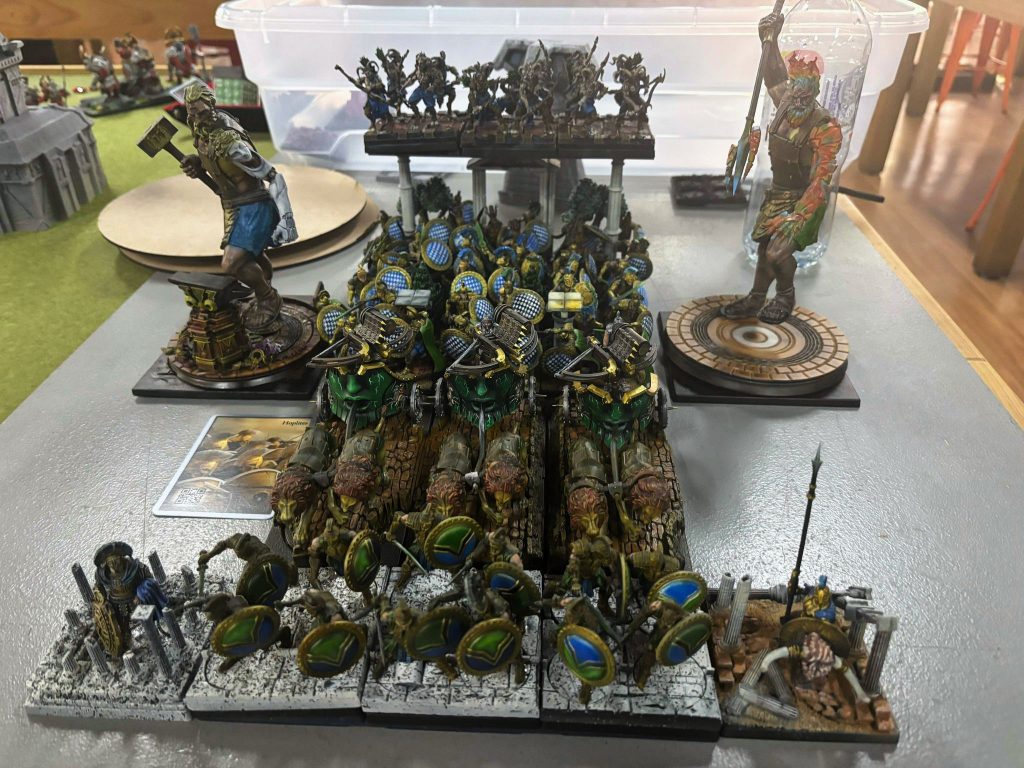 Event photo - Geoff's army - photo credit event organiser Tom N.Round four was against a second City States list, with a similar emphasis on mobility to the round two game, but a bit less razor focus on maximising movement and aggression in exchange for a little more versatility and some interesting tech choices, like the fearsome Satyroi. My list can be particularly vulnerable to backfield snipers, especially if units like the Archimandrite in Legionnaires get engaged and destroyed, which turns into a lot of effective ‘damage’ over time as my healing turns off.