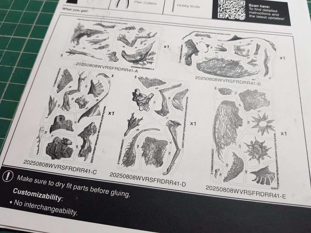 Sprue diagrams, helpfully included on the first page of the instructions. Para Bellum's packaging leaves a bit to be desired: a few components had already popped themselves out of the frame when I first opened the box.For the most part the kit goes together fine. Para Bellum has provided good instructions, a sheet of supplementary building tips, and an ">hour-long tutorial video on YouTube to help you through the build process.