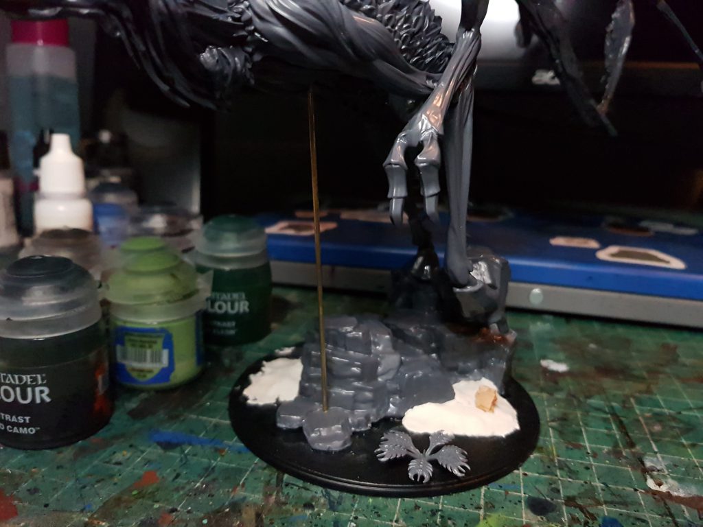 BRRRWith holes in both parts of the wing, lengths of brass rod could be inserted and glued into one half. Following that the wings were detachable without being loose while attached. There is of course an unfortunate visible seam, but it will not be very noticeable on the gaming table.