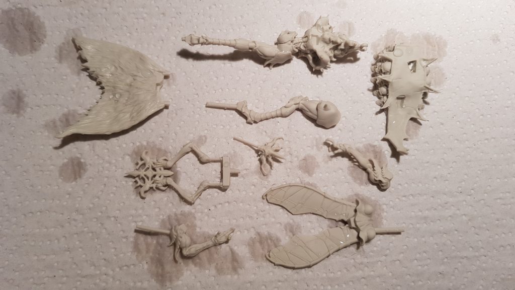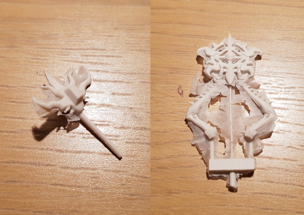 An example of some of the flash on some of Oberon's parts. Credit: Rachel/Para BellumAny miscast-looking bits were restricted to the skulls on the base, where it really doesn’t matter. There is a mould line running down his front leg of the sort that requires sanding, which I couldn’t be bothered to do. At least it’s not too noticeable with paint applied. I didn’t notice any release agent stuck to the model, but I gave the parts a wash and scrub in some soapy water anyway.