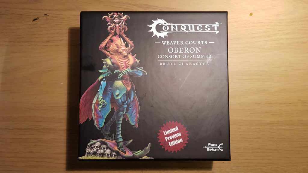 Oberon, Consort of Summer is the first model available from the upcoming Weaver Courts faction for Conquest. He’s a “limited preview edition” which seems to mean he will only be purchasable for a short while. This is a shame because he’s a cool mini, but according to the webstore he’s intended to be used as an alternate sculpt for the Weaver Spellbinder, so at least you aren’t missing out on some special rules by not getting your own copy.