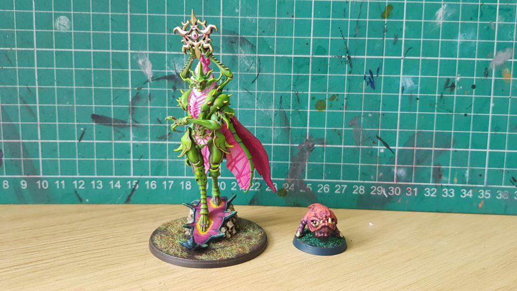 I’m very pleased with how my Oberon turned out. He seems to have done his job, too: I’m eagerly awaiting my next opportunity to paint more Weavers.Finally, here he is next to a Standard Reference Squig: