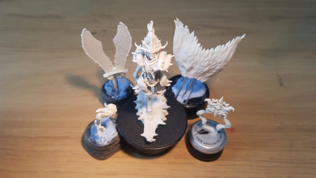 The subassemblies I chose to go with for Oberon. Credit: Rachel/Para BellumI don’t normally go for subassemblies, but for this model it seemed like a good idea. I ended up with 5: the body, the left arm, the hands which hold the icon overhead, the wings and the cape. You could have fewer, but I really wanted to explore the model while painting it.