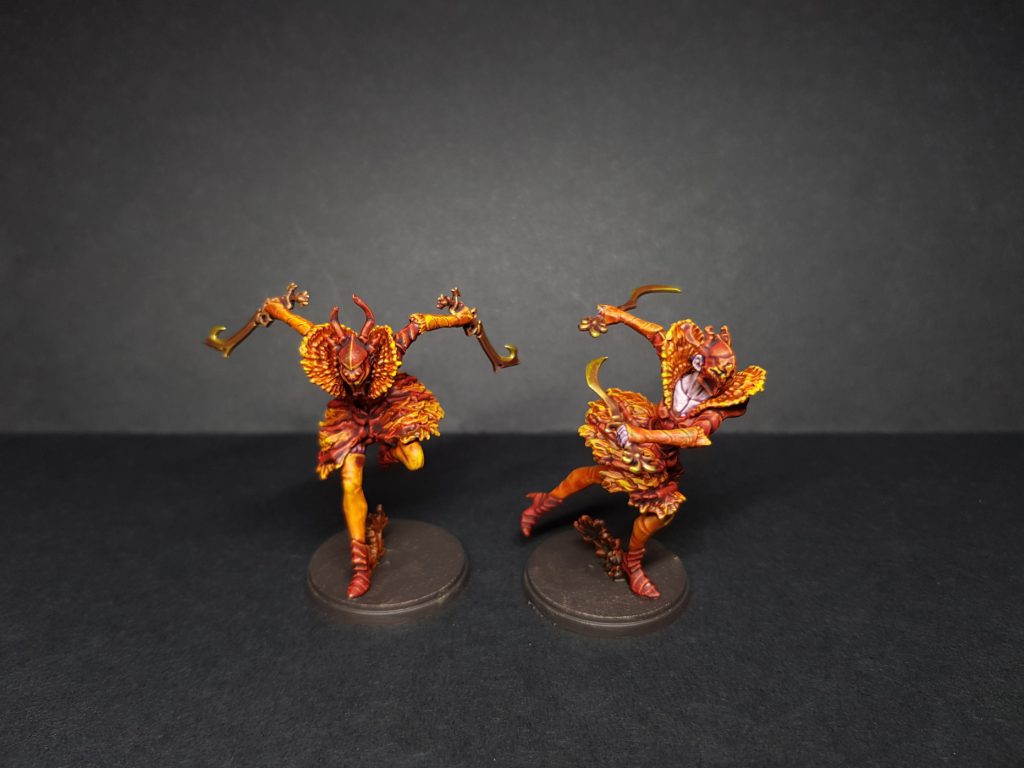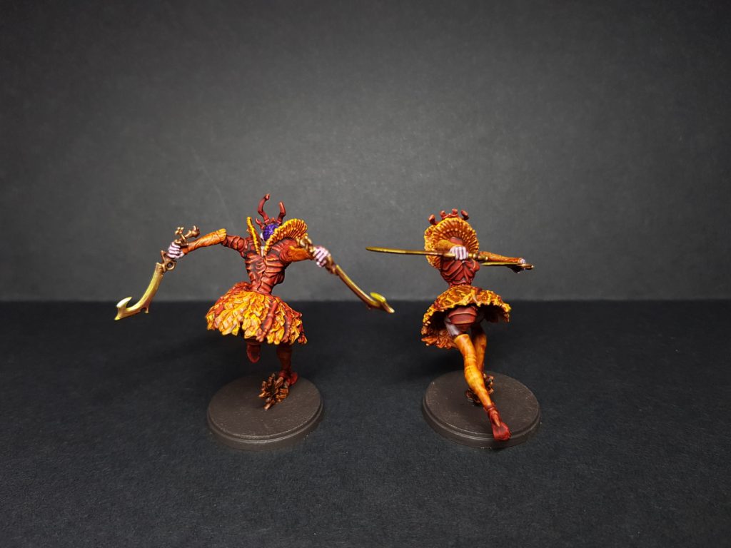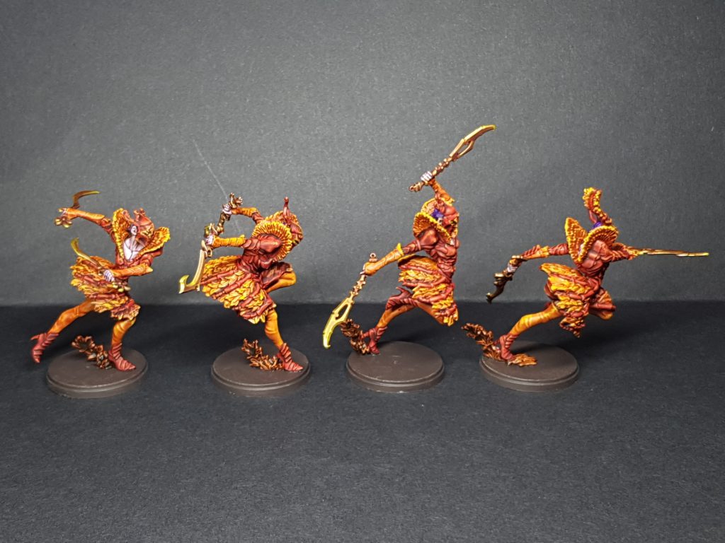 Credit: RachelWhen it came time for painting, I finally realised that certain units actually belong to specific seasonal Courts of the Weavers. The Scathach Hunters come from the Court of Autumn, so it's fitting to paint them in fall colours: yellows, oranges and reds.