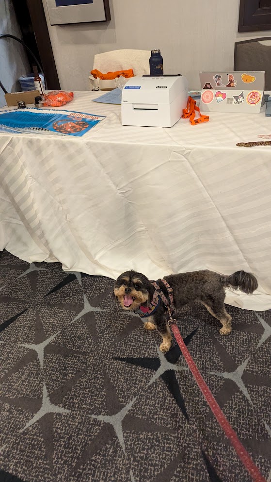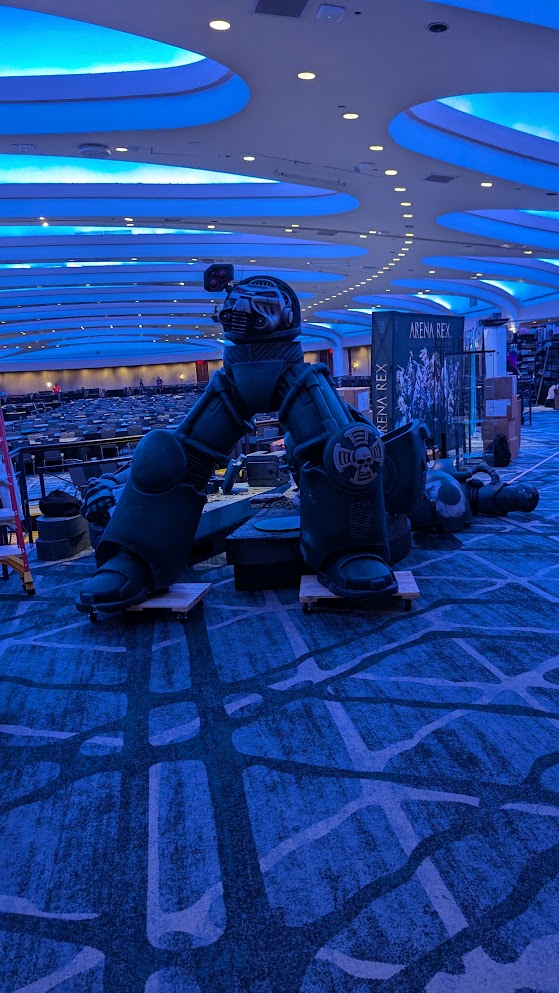 Thursday morning and it was time for Salsa to bid adieu to NoVa. Salsa's beloved daycare called, and she was eager to answer the call and get some doggy ice cream along with her sister. So after a walk around the block (where she was unimpressed with the giant inflatable Urbie), we went to Shirlington and daycare.I then spent the morning in the Hobby Hangout until around noon, when I had an appointment to get my flu, COVID-19, and pneumonia boosters. After getting those, I wandered around the con until my first class. I very much do recommend getting these shots if you plan to attend conventions, especially the LVO and Adepticon. Respiratory illnesses are not fun, and if you *can* protect yourself against differing forms of unpleasant Con Crud, I highly recommend you do so.