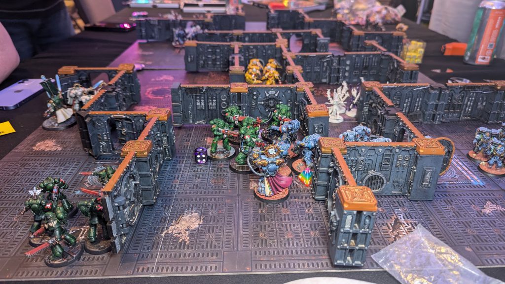 After a bit of a nap, I gathered my army (3000 points of Dark Angels painted throughout 2024) and headed downstairs to participate in an organized narrative game. Myself and The Big Aristotle (of the Badcast Discord) hadn't played 40K in a while, and so we were looking for laid back, friendly, and fun games to refresh our recollections of the rules and have a good time on a Friday night. While we did get a refresh/recollection of the rules, I don't think the NoVa Narrative nightfights are where I should be spending my time and money.