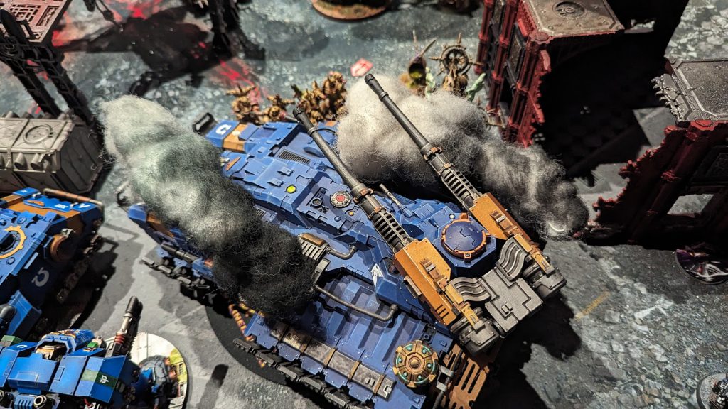 I used the Twin Onslaught Cannons from a Gladiator to serve as the Twin Assault Cannons for the Redeemer, and then the Flamestorm Cannons from a Land Raider Crusader I had built at the 2023 Grand Narrative.