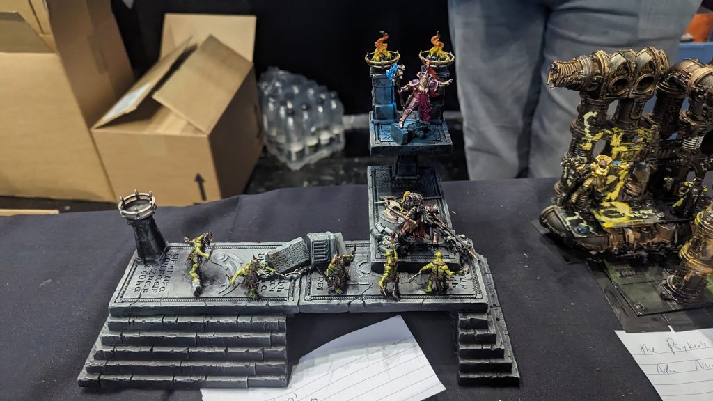 Credit: Kevin StillmanWhile I had my alarm set to wake me up at 5:00 am BST, I dismissed the alarm and went back to bed. I then woke back up at 7:45 am, which was less than ideal for trying to get into the 10th Edition Demo line. So instead, I went to participate in the hobby challenge as I had passes for both Saturday and Sunday. I selected the Age of Sigmar Chaos mini and began to build up a diorama. It was at this point that a hangover headache kicked in and I had not eaten that day. Nor did I have my usual supply of ibuprofen to stave it off. After about 6 hours, I decided my diorama was finished because I could no longer physically focus on the model.