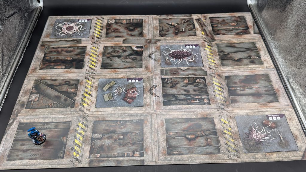 Combat Patrol Issue 3 Scenario. Credit: Kevin StillmanTurn 1: Move up one square, attack Small Infestation Site. 6 attacks, 5 wounds, all saves failed. Infestation Site counterattack: All failed